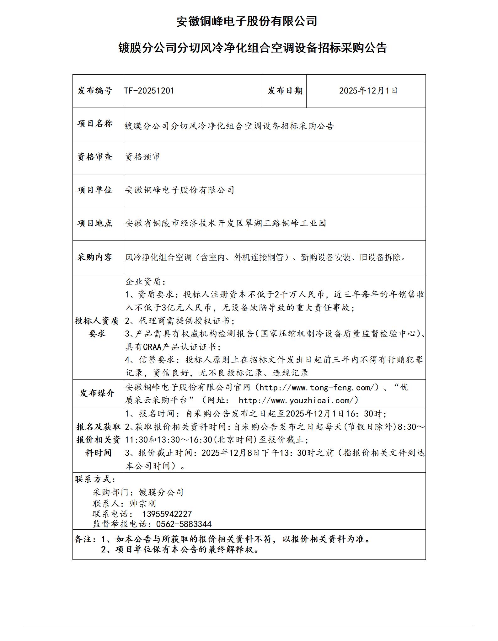 鍍膜分公司分切凈化空調設備采購招標公告_01